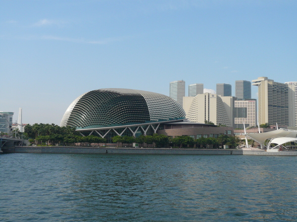 【濱海藝術中心】2002年10月開幕,因外形獨特,宛若兩顆大榴蓮,已成為新加坡的著名地標。 裡面分別還設有音樂廳、劇院、戶外劇場及購物坊 我們來的這天正巧是中秋節 因此在戶外有中秋節的慶祝活動 這些景點都是步行就可到達 新加坡不大阿~~- 9月 22 週一 200815:31